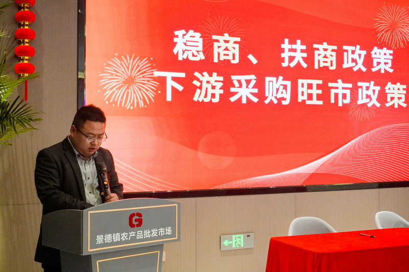 4月14日下午,景德鎮(zhèn)農(nóng)產(chǎn)品批發(fā)市場在招商中心舉辦“旺市啟動大會”。國信宏城公司董事長張慶榮、總經(jīng)理丁正國出席,景德鎮(zhèn)農(nóng)產(chǎn)品批發(fā)市場全體商戶參加。