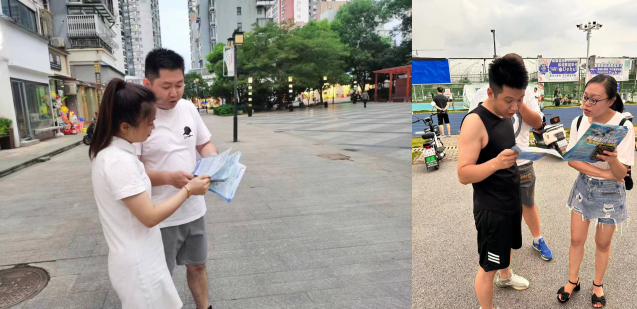 新城公司安排市場部專業(yè)人員與公司其他各部門人員輪流下班后前往人流集中的公園廣場等地點,多形式、多維度介紹體育場館各類項目,包括游泳培訓、健身年卡、籃球、羽毛球、舞蹈等。一線員工利用對項目細節(jié)的深入了解,通過實地示范與一對一交流的方式,向潛在客戶詳細介紹各項目內(nèi)容及我公司優(yōu)勢。后端人員負責現(xiàn)場解答使用問題并收集用戶反饋方便后期隨時跟進調(diào)整。