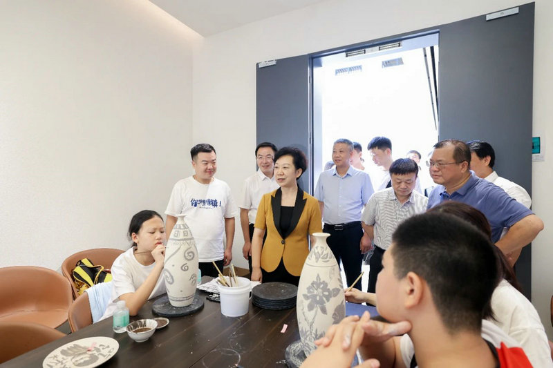 景德鎮(zhèn)藝美產(chǎn)業(yè)園項(xiàng)目以“陶瓷文化+”為核心,集藝術(shù)教育、研究、創(chuàng)作、交流、體驗(yàn)及高端美展為一體。胡雪梅來到該項(xiàng)目現(xiàn)場,參觀了展陳展覽,聽取了作品創(chuàng)意、設(shè)計(jì)等介紹,并考察了研學(xué)基地情況。她叮囑有關(guān)平臺(tái)公司要樹立文創(chuàng)品牌,明晰市場定位,盡快實(shí)現(xiàn)優(yōu)質(zhì)產(chǎn)品的量產(chǎn)。