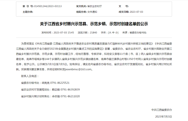 近日,江西省農(nóng)業(yè)農(nóng)村廳關(guān)于江西省鄉(xiāng)村振興示范縣、示范鄉(xiāng)鎮(zhèn)、示范村創(chuàng)建名單的公示結(jié)果出爐,市國控集團結(jié)對的十里崗鎮(zhèn)白塔村被評定為江西省鄉(xiāng)村振興示范村。