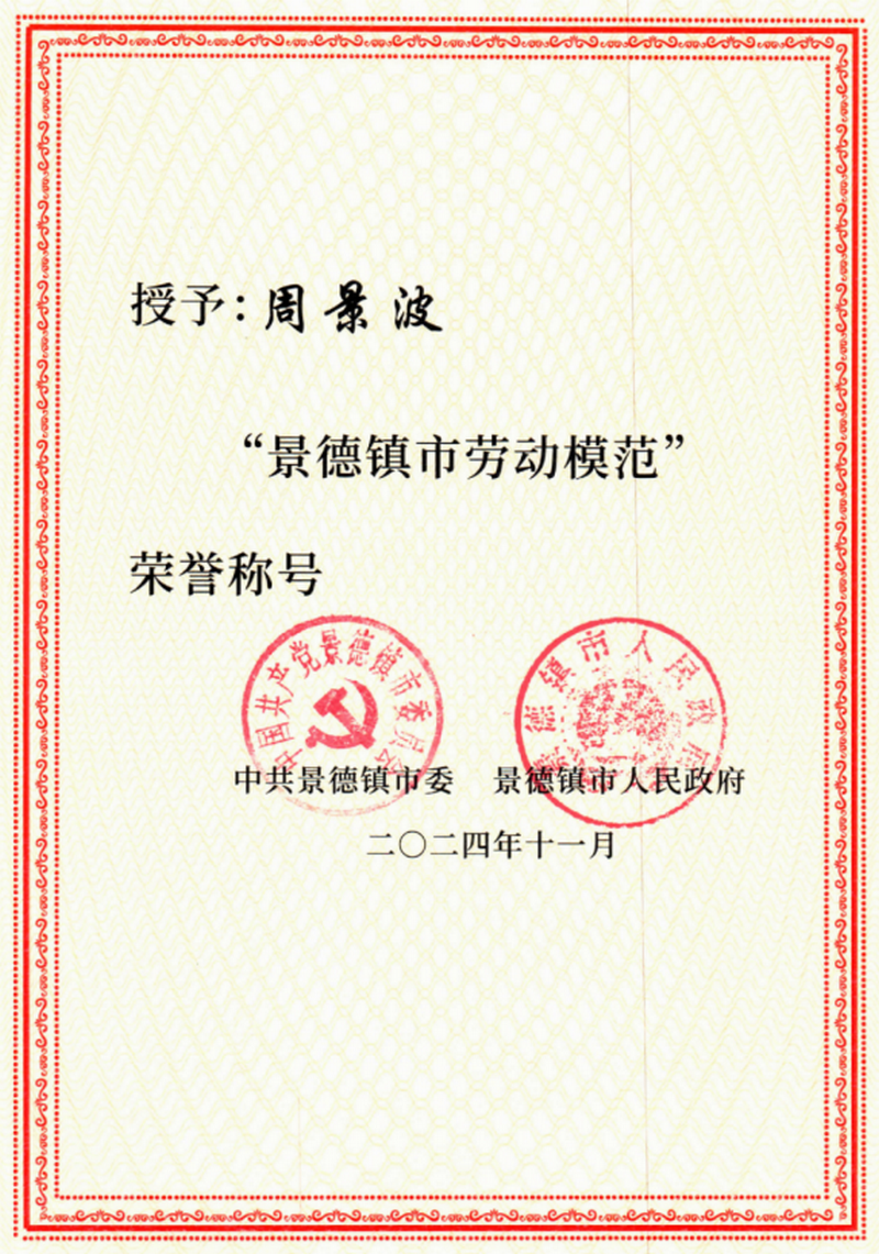 11月28日上午,市委、市政府在紫晶會堂隆重舉行2024年景德鎮(zhèn)市勞動模范和先進(jìn)工作者表彰大會,表彰一批在平凡工作崗位上作出不平凡業(yè)績,積極進(jìn)取、樂于奉獻(xiàn)、貢獻(xiàn)突出的先進(jìn)模范典型。此次大會共101人獲得表彰,來自集團(tuán)下屬子公司周景波同志被授予“2024年景德鎮(zhèn)市勞動模范”光榮稱號。這一榮譽的獲得,是對周景波同志長期以來辛勤工作、無私奉獻(xiàn)的肯定,也是對他所代表的國控集團(tuán)和景德鎮(zhèn)市國信置業(yè)有限公司在城市建設(shè)領(lǐng)域所做出卓越貢獻(xiàn)的認(rèn)可。