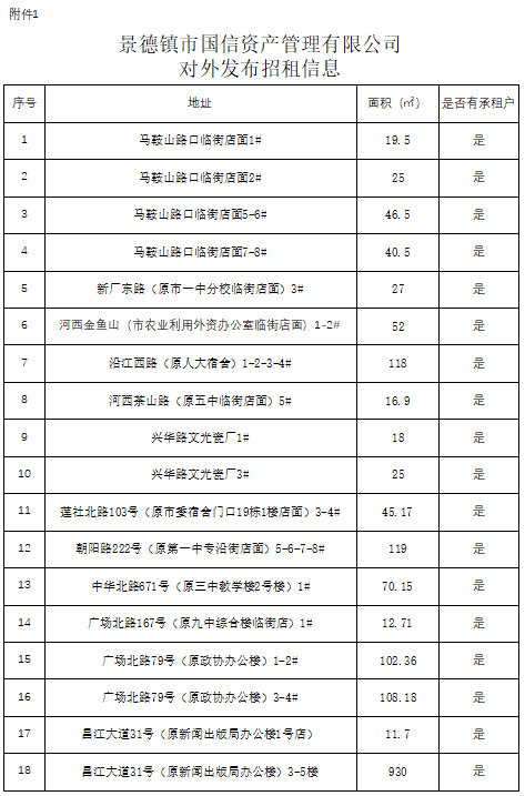 景德鎮(zhèn)市國(guó)信資產(chǎn)管理有限公司 對(duì)外發(fā)布招租信息[12.13]