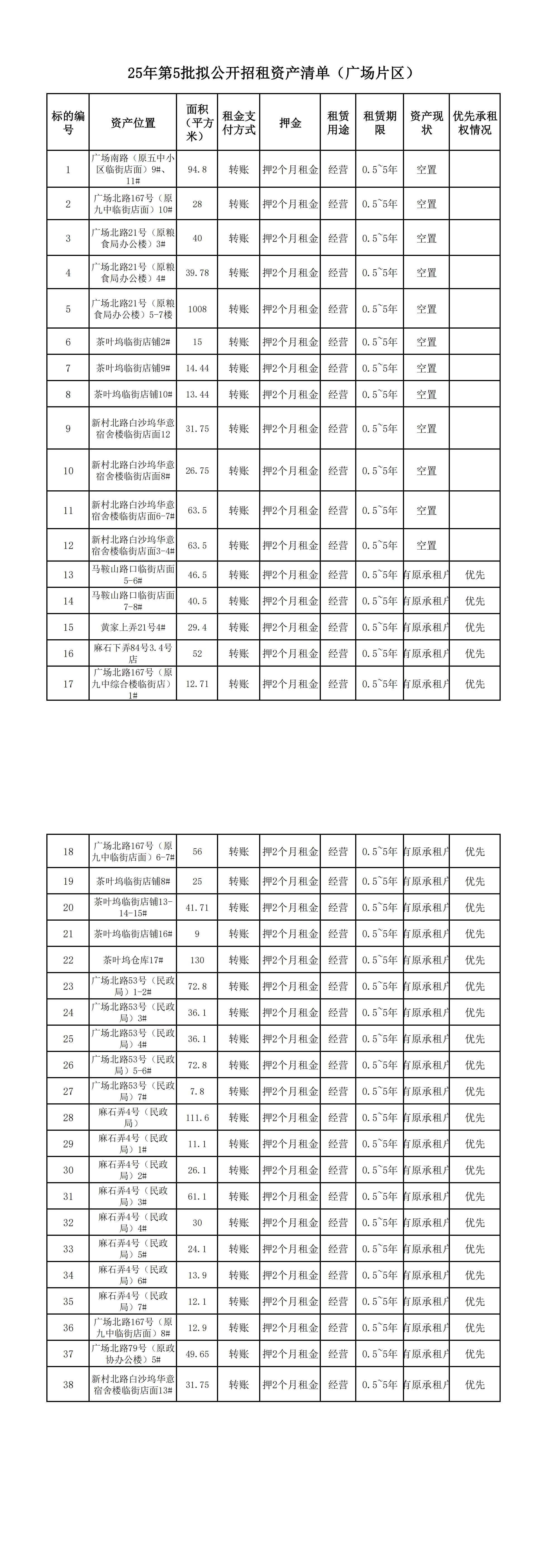 現(xiàn)位于廣場片區(qū)資產(chǎn)進行公開招租,具體招租標的物信息面積詳見《招租清單》